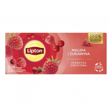 Herbata Lipton owocowa, malina i żurawina, 20 torebek
