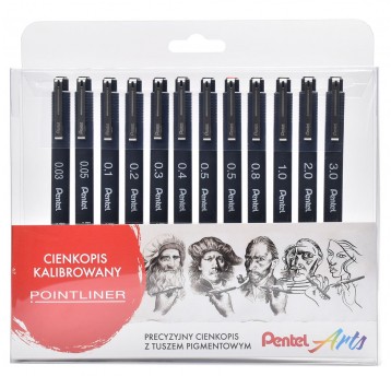 Cienkopis kalibrowany Pentel PointLiner S20P mix 12 szt.