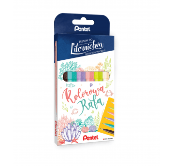 Zestaw pisaków Pentel Brush Sign Pen SES15C do kaligrafii Kolorowa Rafa 6 kolorów