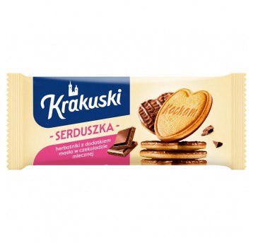 Ciastka Krakuski serduszka maślane w czekoladzie mlecznej, 171 g