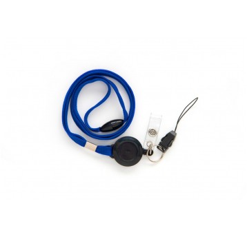 Taśma wypinająca Argo z mechanizmem ściągającym, klipsem i zawieszką niebieska