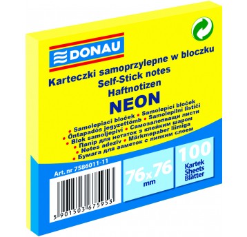 Karteczki samoprzylepne Donau 76 x 76 mm żółte neo
