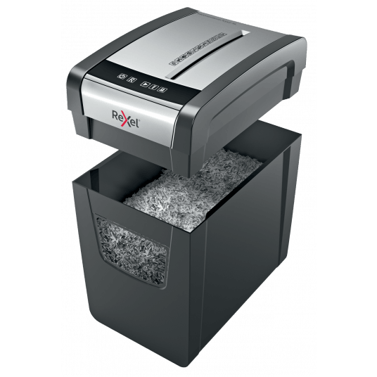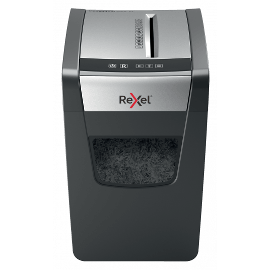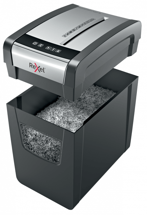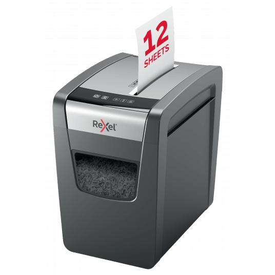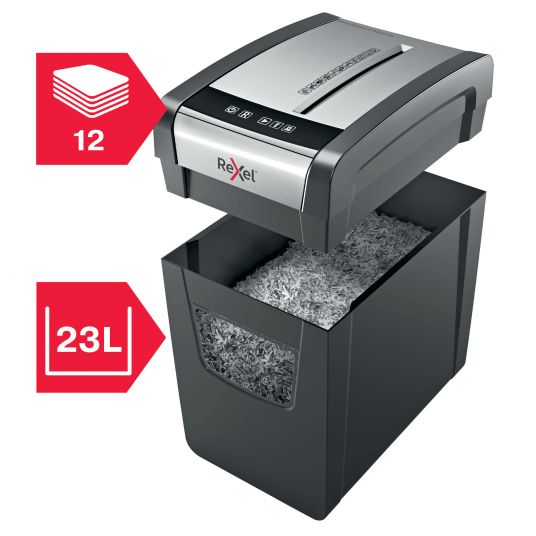 Niszczy do12 kartek jednocześnie. Poziom bezpieczeństwa: P3 Tnie na konfetti o wymiarach 5 x 42 mm. Może pracować nieprzerwalnie przez 6 minut. Duży 23 litrowy pojemnik na ścinki pomieści do 200 kartek A4