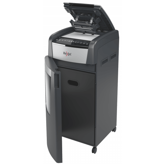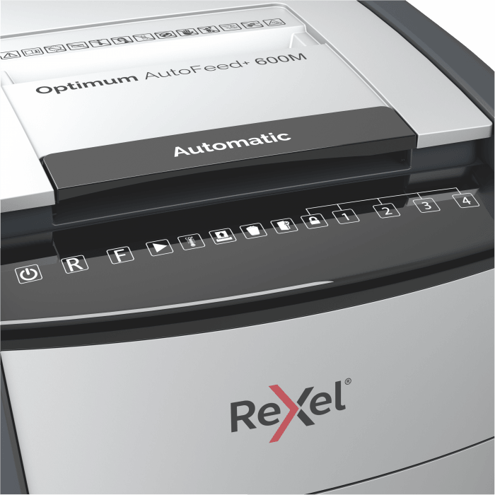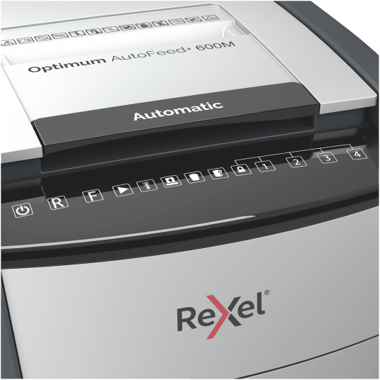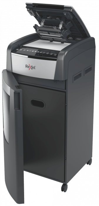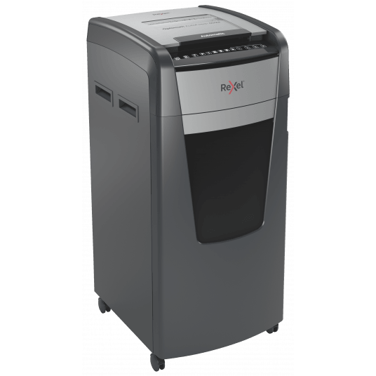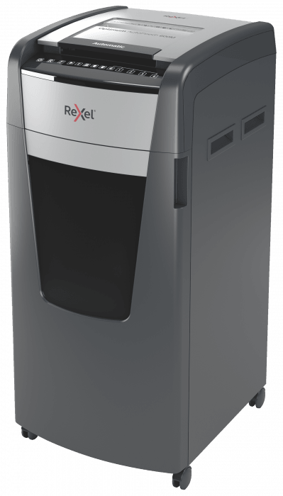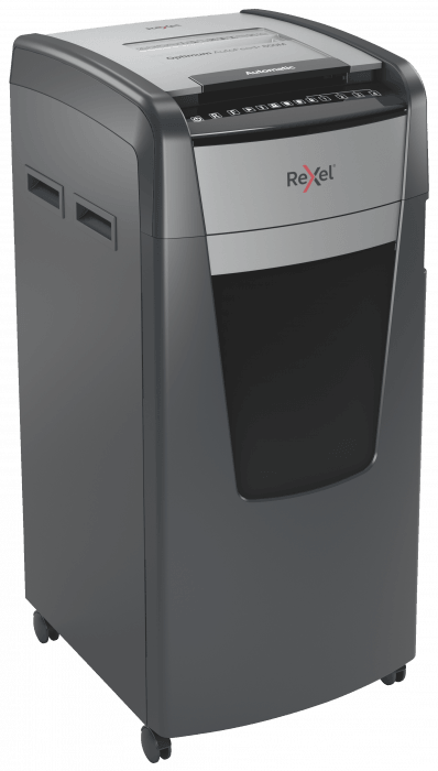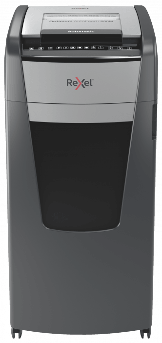 - jednorazowo niszczy automatycznie do 600 kartek A4 (80 gsm), tnąc arkusze na mikrościnki (o wymiarach 2 x 15 mm), co zapewnia poziom bezpieczeństwa P-5