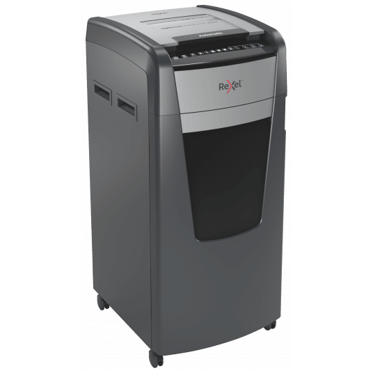 - jednorazowo niszczy automatycznie do 600 kartek A4 (80 gsm), tnąc arkusze na konfetti (o wymiarach 4 x 30 mm), co zapewnia poziom bezpieczeństwa P-4