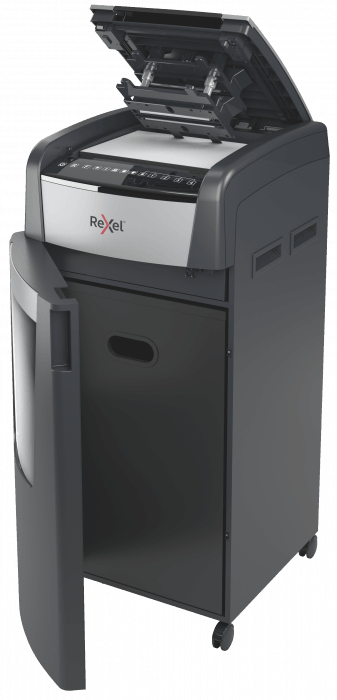 - wyposażona jest w automatyczny podajnik i 110-litrowy pojemnik na ścinki, co sprawia, że idealnie nadaje się do użytku biurowego