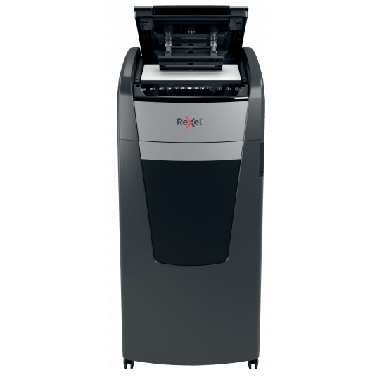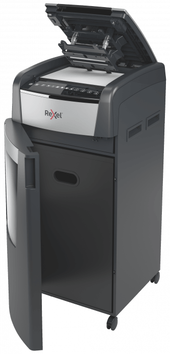 - nie wymaga ręcznego podawania papieru ani wcześniejszego usuwania zszywek i spinaczy - ta automatyczna niszczarka całą pracę wykona za Ciebie