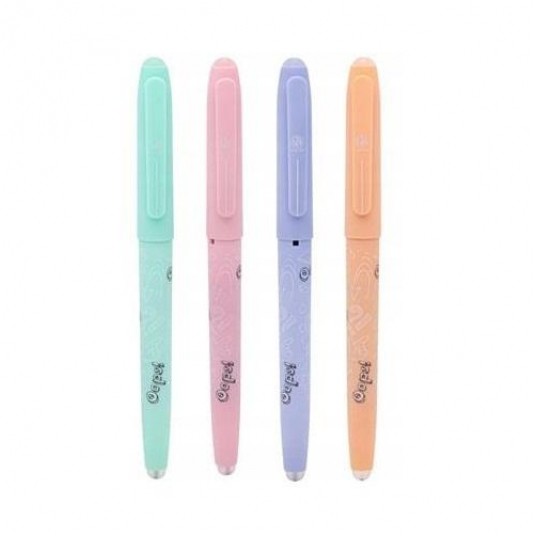 Długopis wymazywalny ze skuwką - 2 końcówki ścierające wysokiej jakości - wyjątkowa lekkość pisania dzięki żelowej konsystencji - możliwość dokupienia i wymiany zużytego wkładu Oops! - kolor tuszu - niebieski - grubość końcówki 0,6mm - korpusy w pastelowych kolorach '- powierzchnia soft touch
