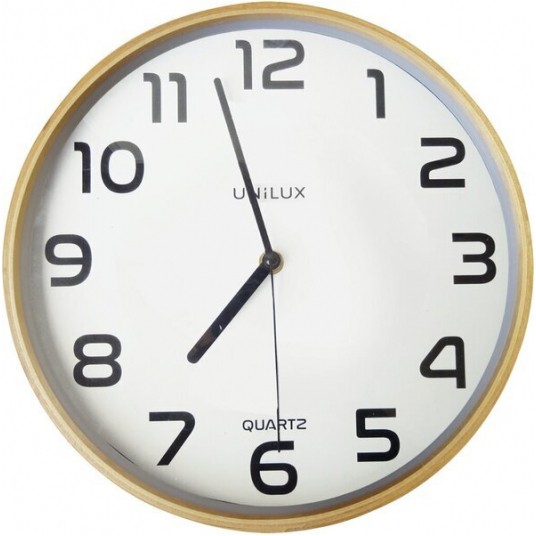 Zegar ścienny o prostym designie, w neutralnym kolorze. - skandynawski styl - połączenie drewna i koloru - cyfry kontrastujące z tarczą zapewniają doskonałą czytelność - nawet z 35 m - cichy mechanizm i bezszelestna praca wskazówek - precyzyjny i niezawodny system zegarowy Quartz - praktycznie brak odchyleń w ciagu całego czasu użytkowania - z tyłu uchwyt do zawieszenia na ścianie - szklana tarcza, kontur wykonany z drewna bukowego - zasilany baterią AA - w zestawie - gwarancja 2 lata