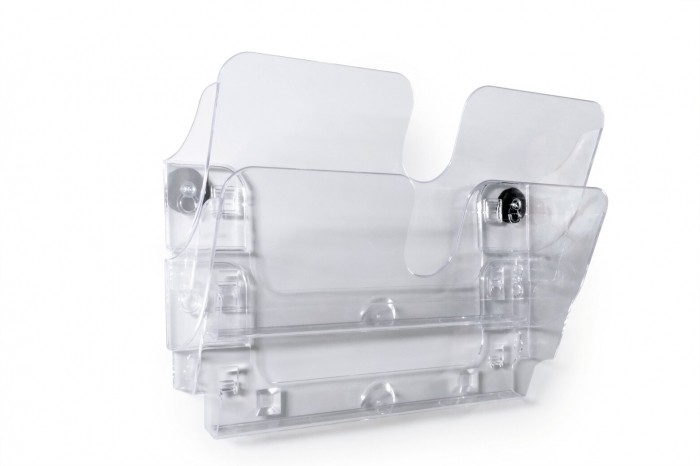 Pojemnik na ulotki FLEXIPLUS A4 poziomy magnetyczny z dwiema przegródkami do materiałów informacyjnych Idealny do materiałów informacyjnych - do mocowania na metalowych ścianach w salonach wystawowych, w poczekalniach, na targach i w obszarach produkcyjnych Nośność ok. 3 kg Wymiary wewnętrzne: 340 x 250 x 23 mm (szer. x wys. x gł.)