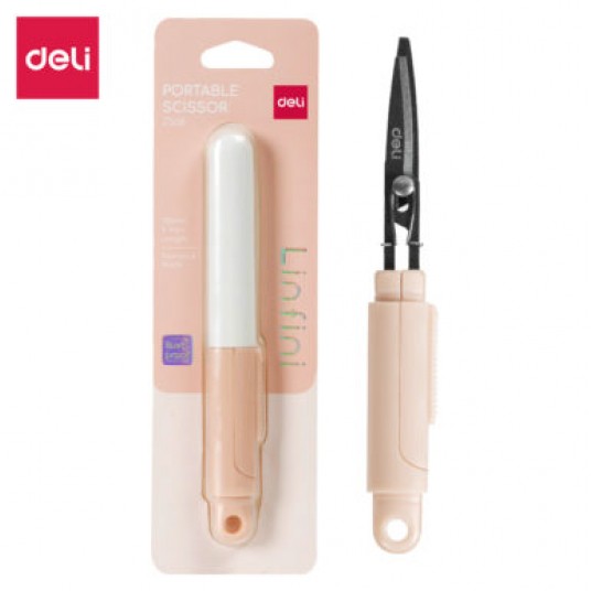 Kompaktowe nożyczki w bezpiecznym etui Deli Linfini EZ508 różowe długość 125 mm ostrza ze stali nierdzewnej zapobiegające przyklejaniu się materiału ergonomiczne, symetryczne uchwyty z plastiku ABS zaokrąglone końcówki dla bezpieczeństwa antykorozyjne – odporne na rdzę poręczny rozmiar – łatwe do przenoszenia zapakowane w blister idealne do prac biurowych, szkolnych i domowych