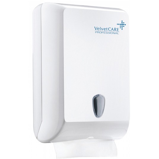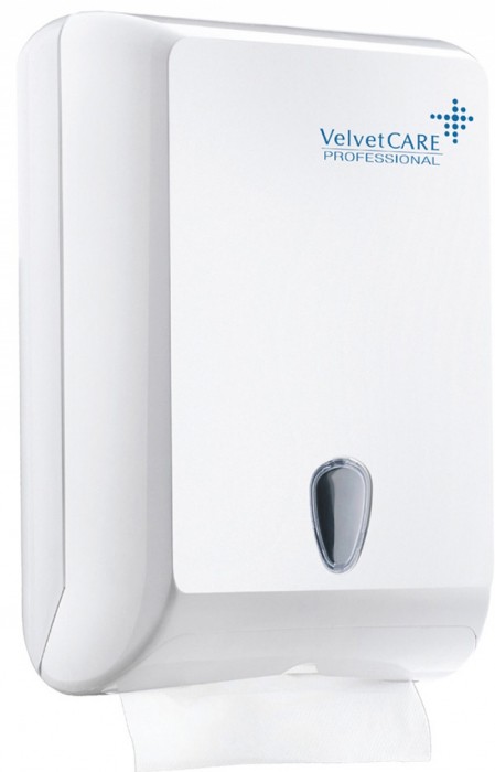 Podajnik do ręczników papierowych składanych Materiał wykonania: ABS (korpus), nylon (zamek) Wymiary: 290x400x130mm Kolor: biały