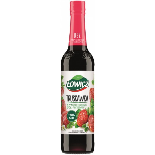 - składniki: cukier, woda, sok truskawkowy z zagęszczonego soku truskawkowego 4,5 %, koncentrat czarnej marchwi, regulator kwasowości – kwas cytrynowy, witamina C, witamina D, aromat