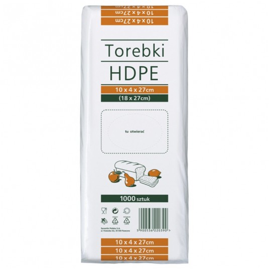Torebki spożywcze HDPE Sarantis, 10x4x27cm, transp