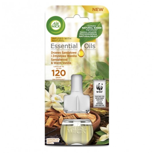 wkład do elektrycznego odświeżacza powietrza AIR WICK Drzewo Sandałowe i Zmysłowa Wanilia wypełnia wspaniałym aromatem każdy zakątek pomieszczenia